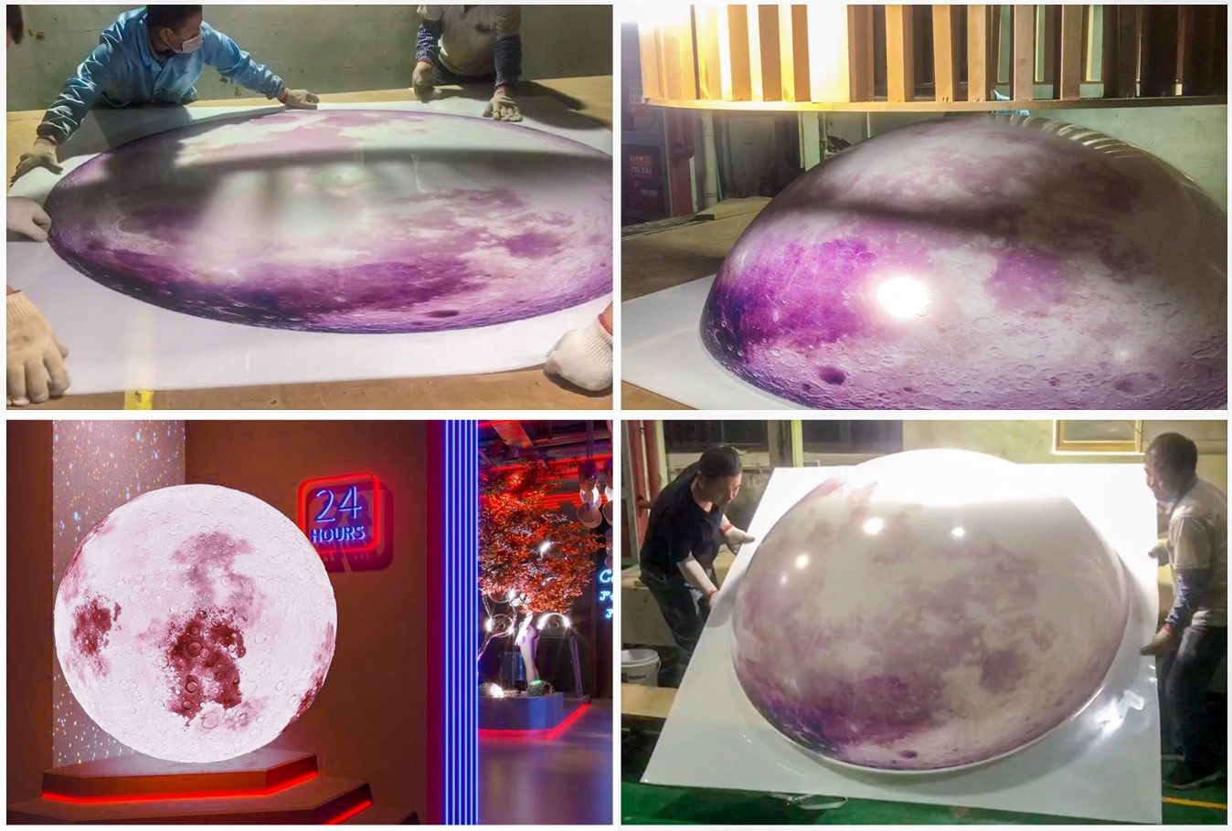 表面處理:根據(jù)月球的要求,進(jìn)行表面處理,包括噴漆、印刷、覆膜等處理方式,使月球表面更加美觀、逼真。燈箱組裝:將月球燈箱的組成部分,包括吸塑月球、燈箱骨架、燈光、電線等進(jìn)行組裝,使其達(dá)到預(yù)期的效果。